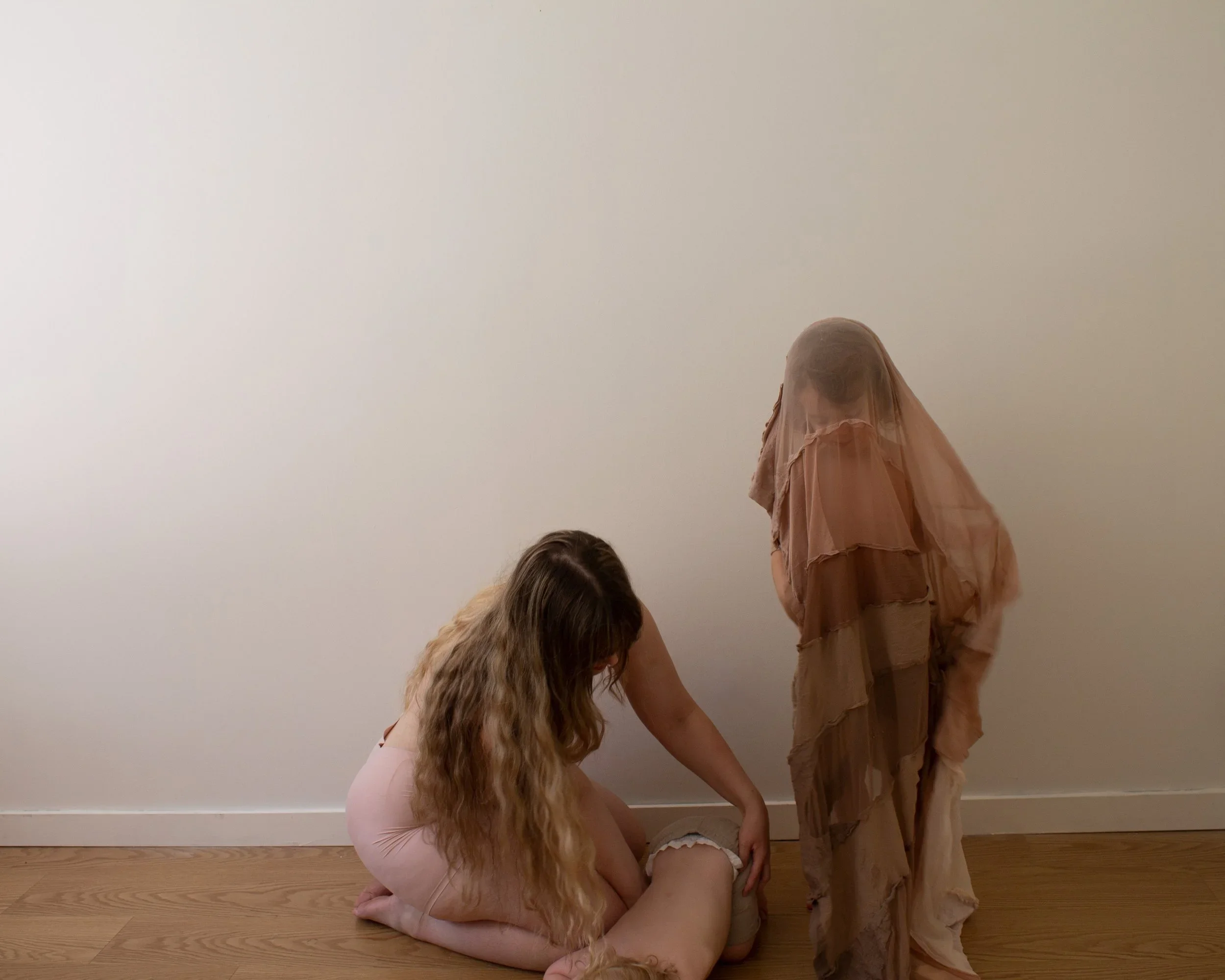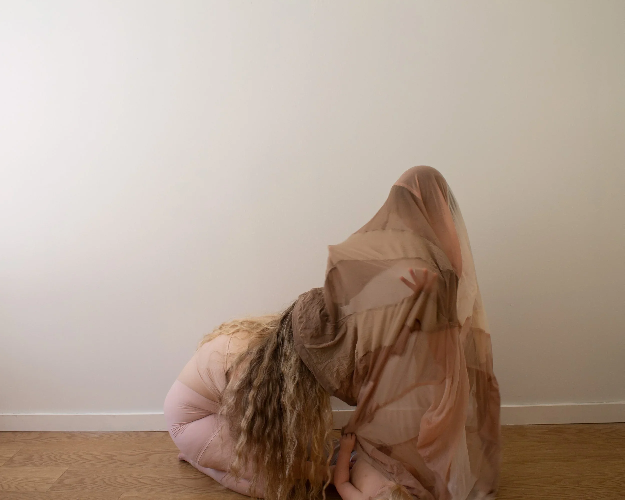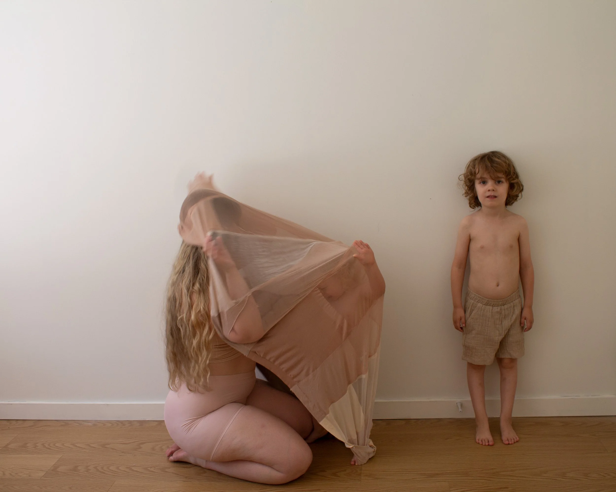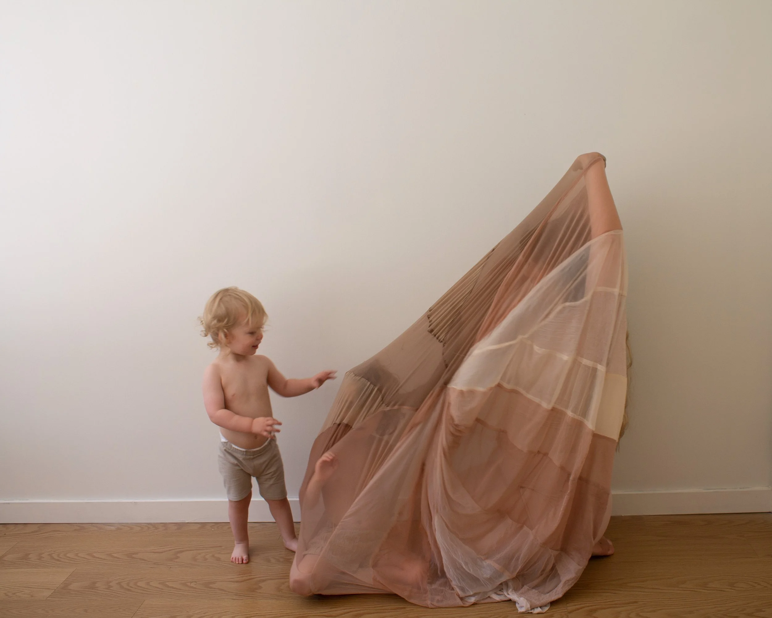 Jude jumps up and grabs it before I can. He puts it to his cheek and looks at me with knowing. Knowing my pain. Knowing my despair. He knows it. He has felt when I am lost with no map to bring me home. I am his sense of place, his home. His eyes stare into my own, and he hands the nude covering to me. He gently whispers, "here you go, mommy. You got to be careful." I respond, "yes, my child. I will try my best." His words bring me back. I smile and wrap the covering over us, and he giggles. I hear Elias crying for me, and I leave Jude alone with fabric over his face, watching me walk away.